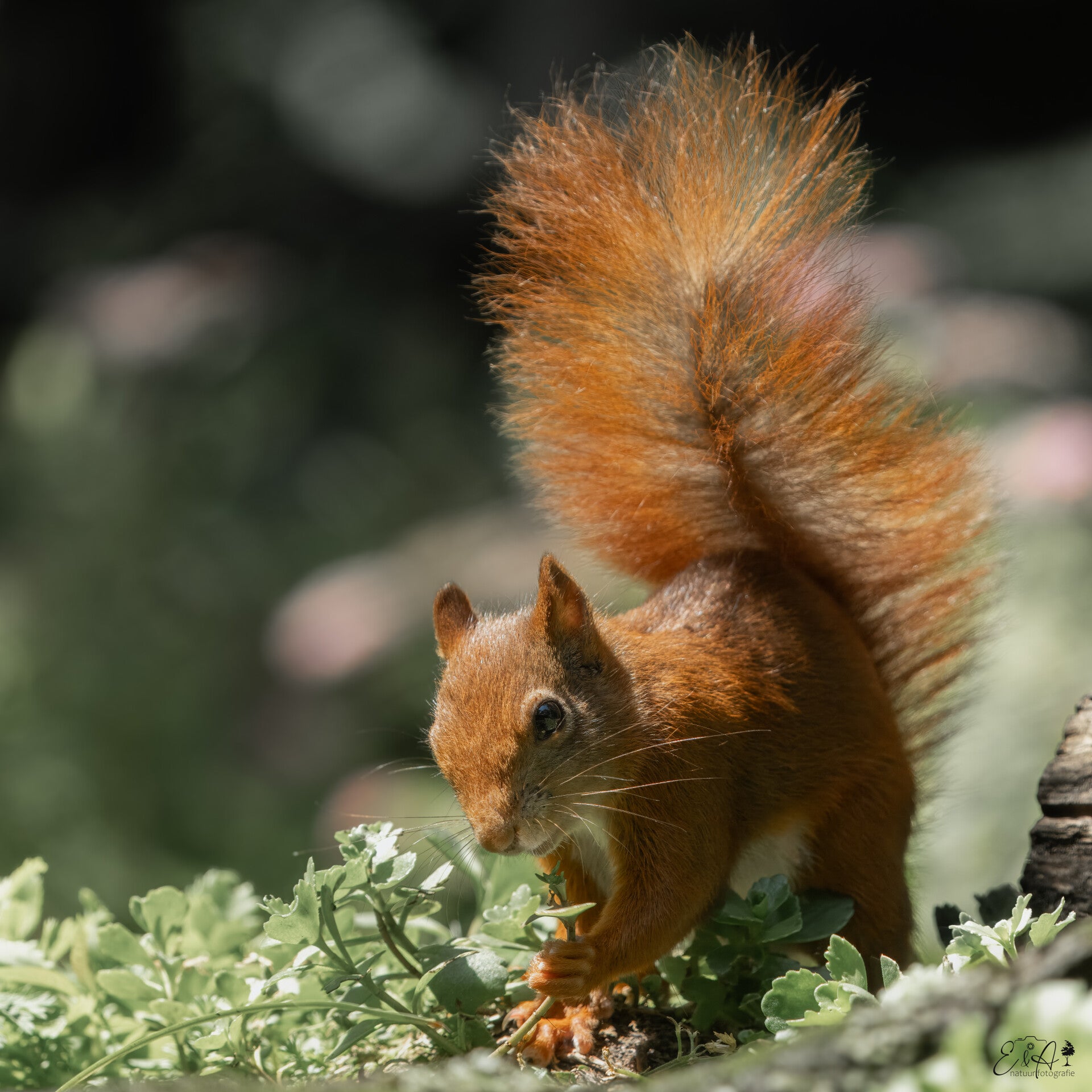 In de boomstronken die er liggen en staan zijn voldoende mogelijkheden om voer te verstoppen. Ook staan er voerbakjes in het mos waar je in kan voeren. Wij doen dit bewust niet, omdat wij de foto's in het mos vaak minder mooi vinden ogen dan de foto's op boomstronken en takken.