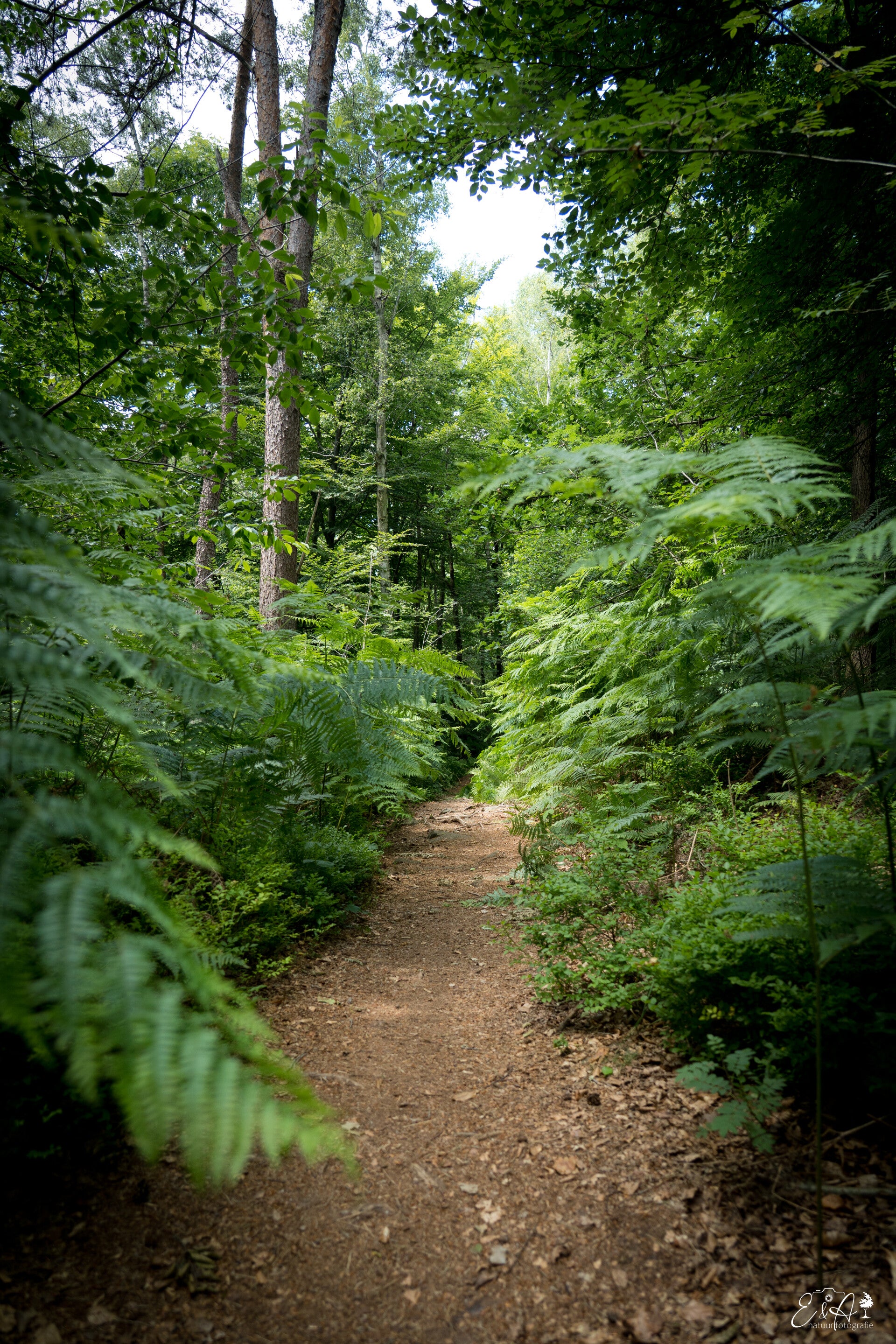 We vervolgen de route die verder gaat door een bos-gedeelte, ons huisje ligt ook in dit gedeelte van het gebied.