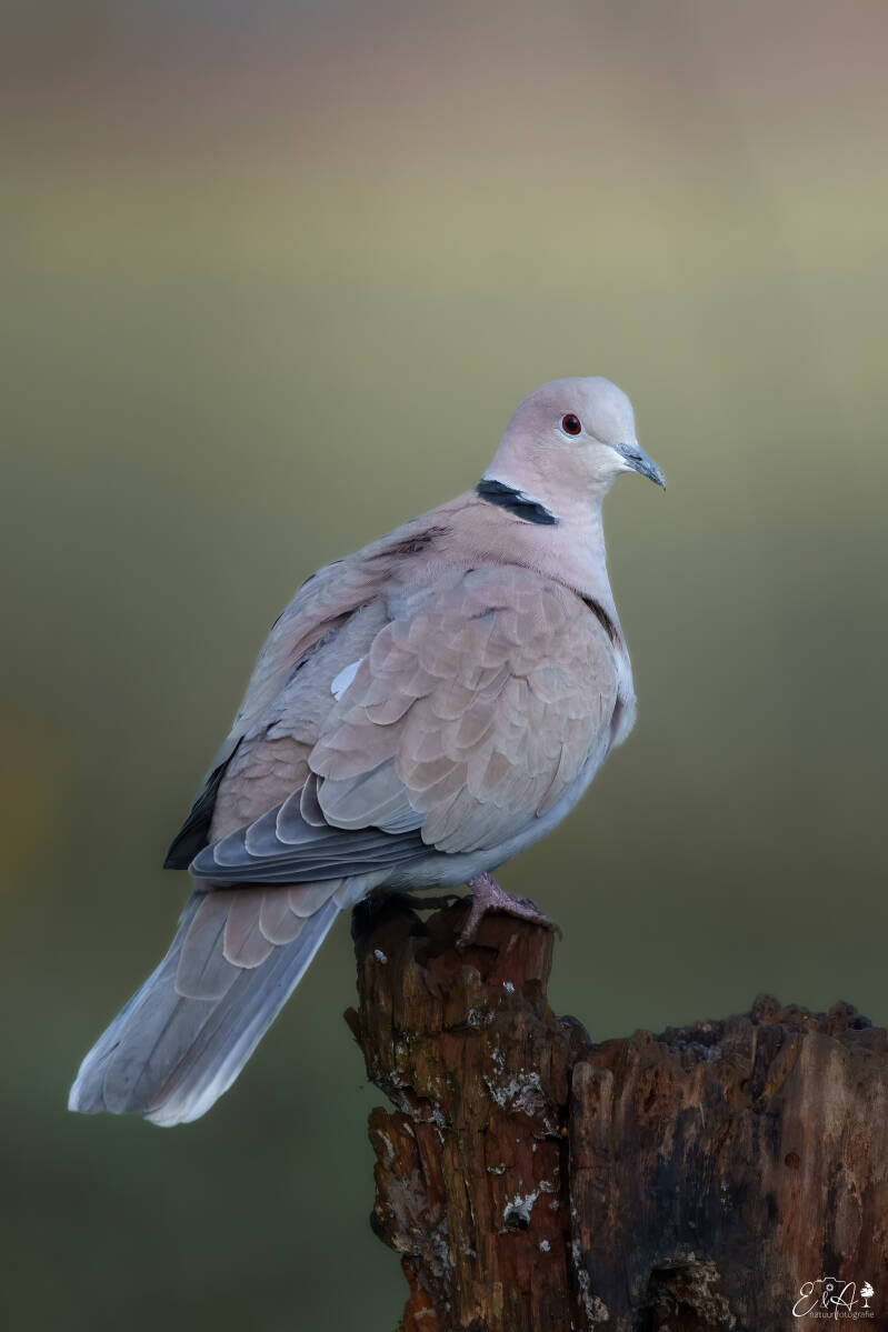 Het verenkleed is licht beigegrijs, met een zwart-witte nekband en een contrasterende donkerrode iris. In de vlucht vallen de lichte vleugelpartijen en lichte buitenste staartpennen op. Turkse tortels zijn bijna altijd met z'n tweeën.