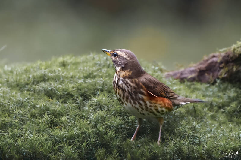 Bovendelen bruin en onderdelen wit met sterke donkere streping. De flanken en ondervleugeldekveren zijn koperrood gekleurd en vallen in de vlucht goed op. De kop is opvallend getekend met een roomwitte wenkbrauwstreep en een witte mondstreep.