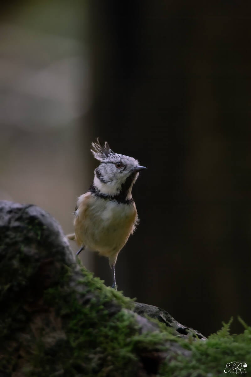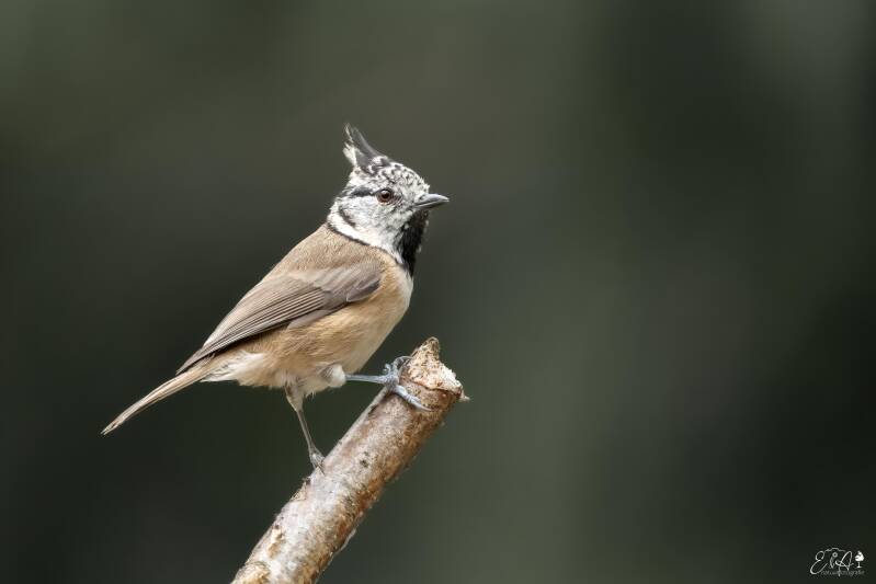 Bovendelen bruin en onderdelen vuilwit. Markante zwart-witte koptekening en opvallende spitse, driehoekige kuif die kan worden opgezet. Geen verschil tussen mannetje en vrouwtje.