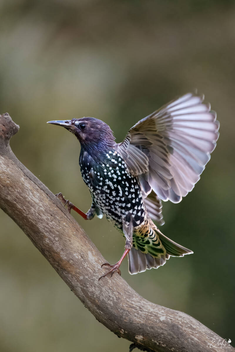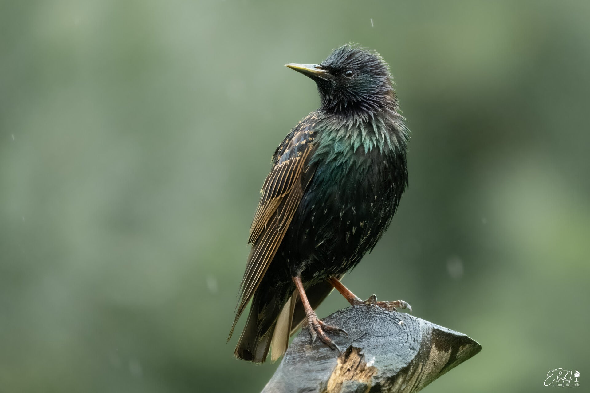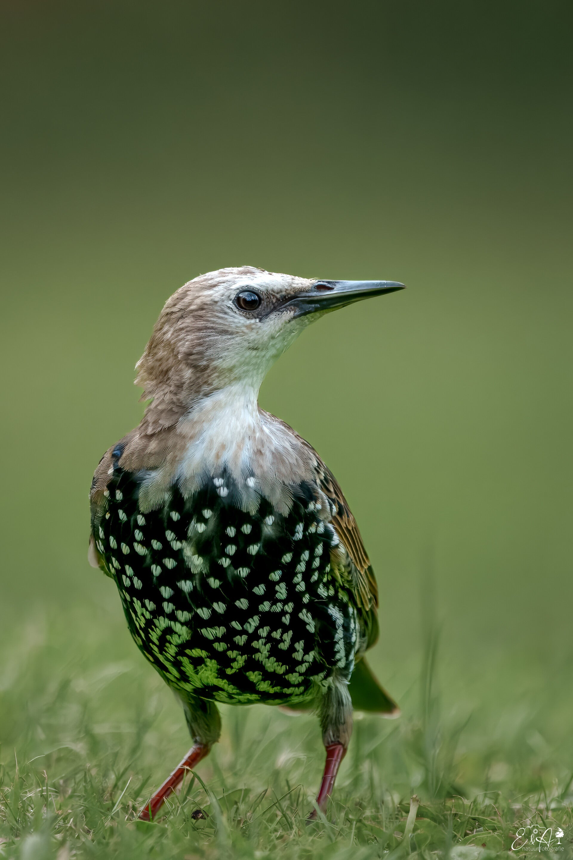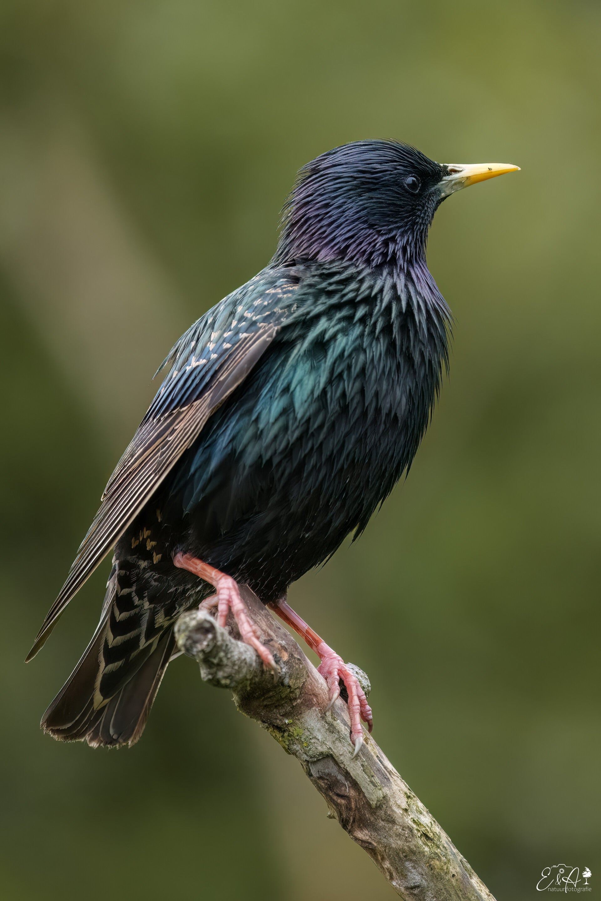 In de wintermaanden een zwart verenkleed met een paarsgroene gloed en opvallende witte spikkels. In broedkleed zijn spreeuwen zwart gekleurd met een gloed van paarse, blauwe en groene kleuren. Jonge spreeuwen hebben tot in september een bruin, onopvallend verenkleed. Leeft in groepen, na het broedseizoen soms zeer grote groepen. Zijn vrij luidruchtig. Spitse snavel die geel is in het broedseizoen, daarbuiten donker grijs/zwart.